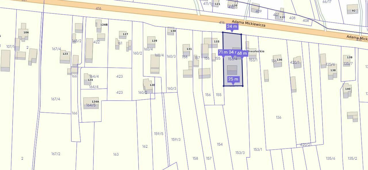 Działka 2: 17 arów – zabudowana domem jednorodzinnym nr. ewidencyjny 153/4